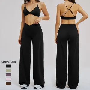 Custom Logo Crossover High Waist Wide Leg Trousers for Workouts & Errands